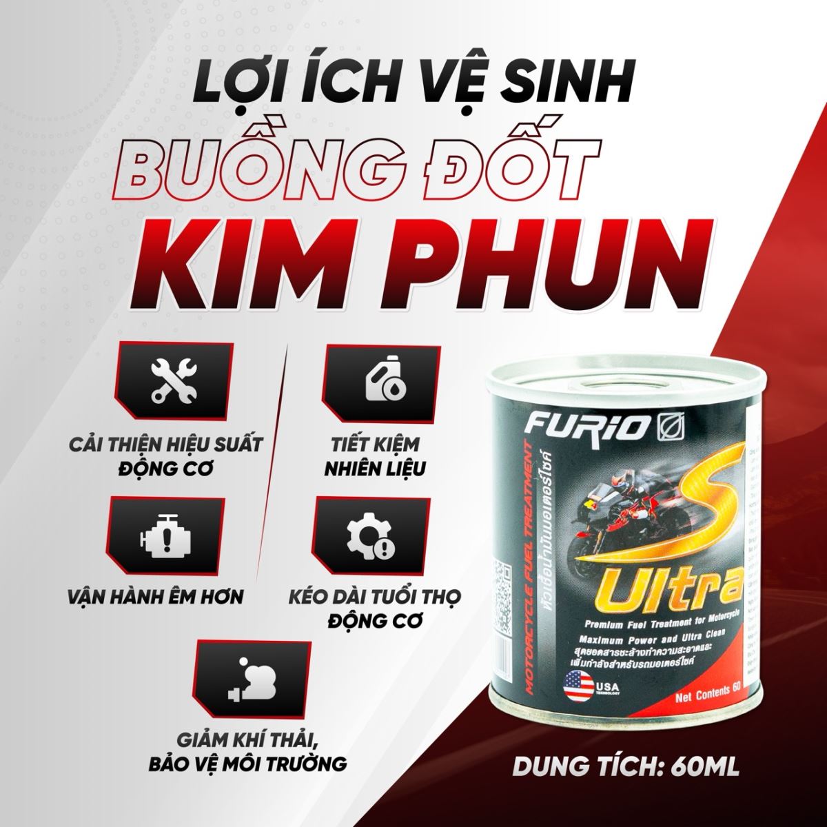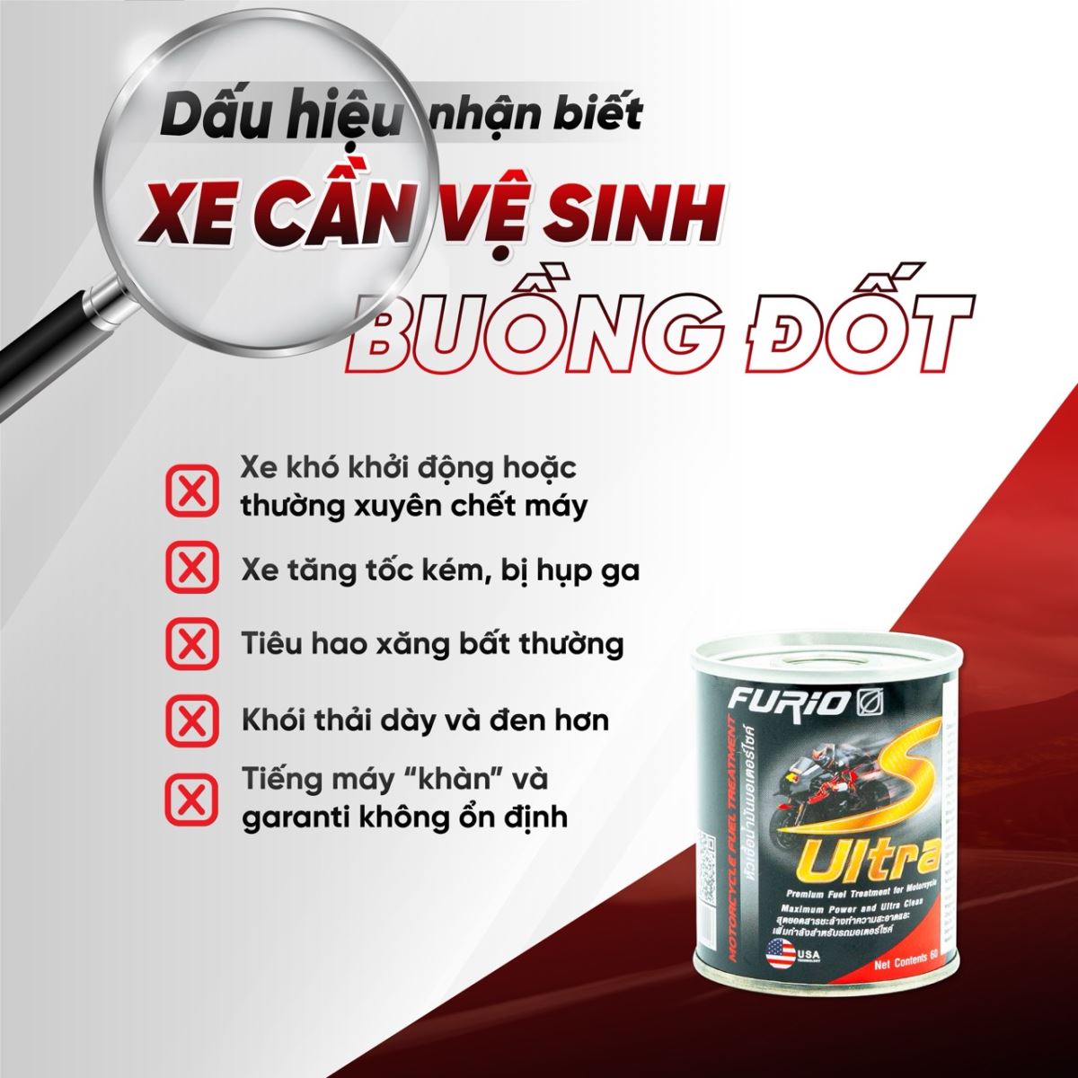 Dung dịch vệ sinh buồng đốt xe máy, kim phun, bình xăng BCP S-ULTRA được khuyến nghị sử dụng thường xuyên cùng với mỗi lần thay nhớt xe máy.